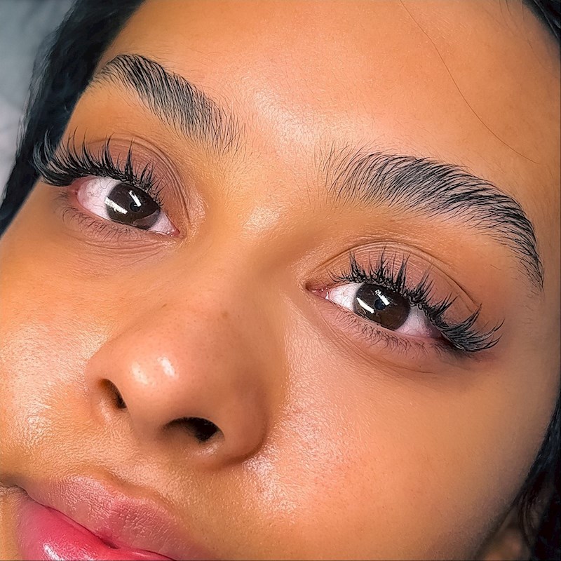This is a custom design lash set that mimics the look of a strip lash/falsies. This can be made full and chunky or airy and natural. This is a designer lash set made to tailor fit what you want and how you want your lashes done.